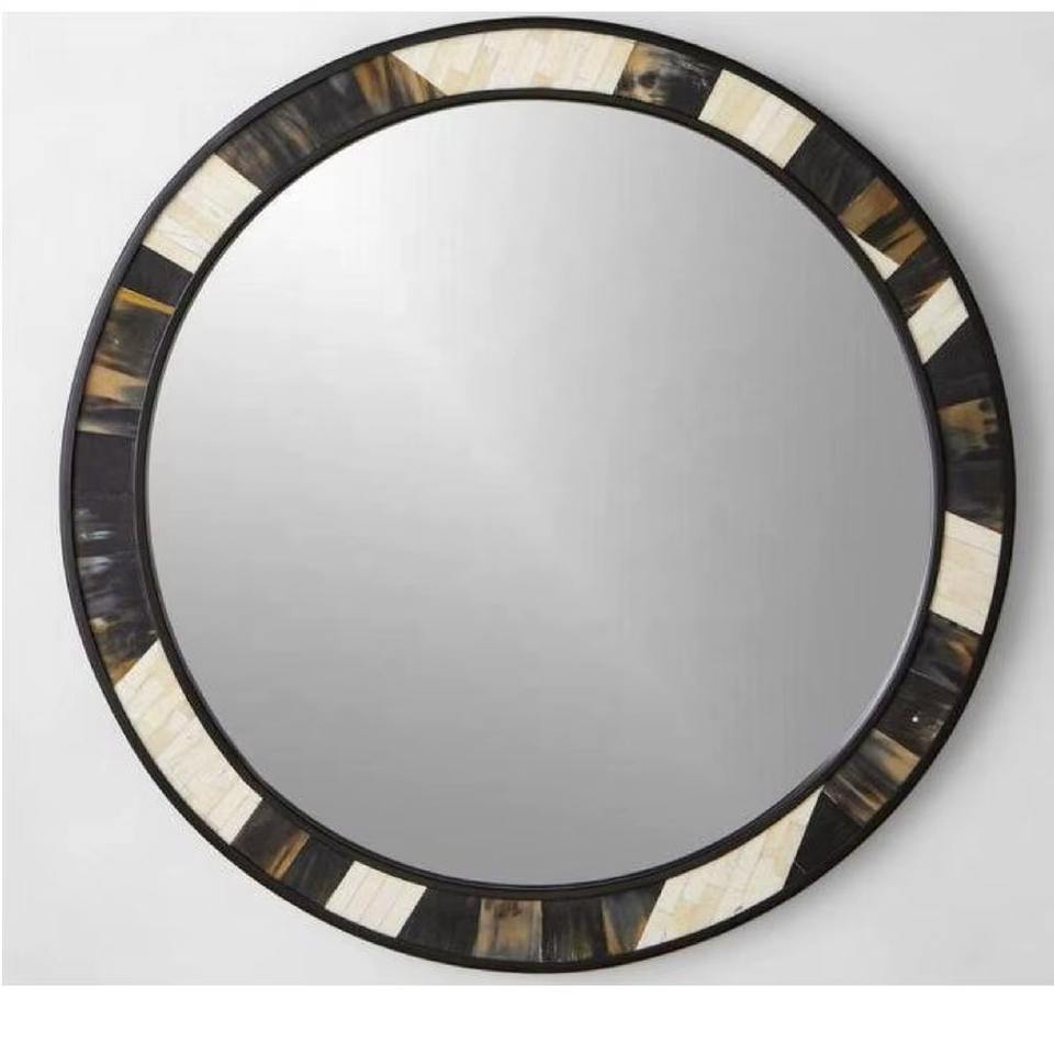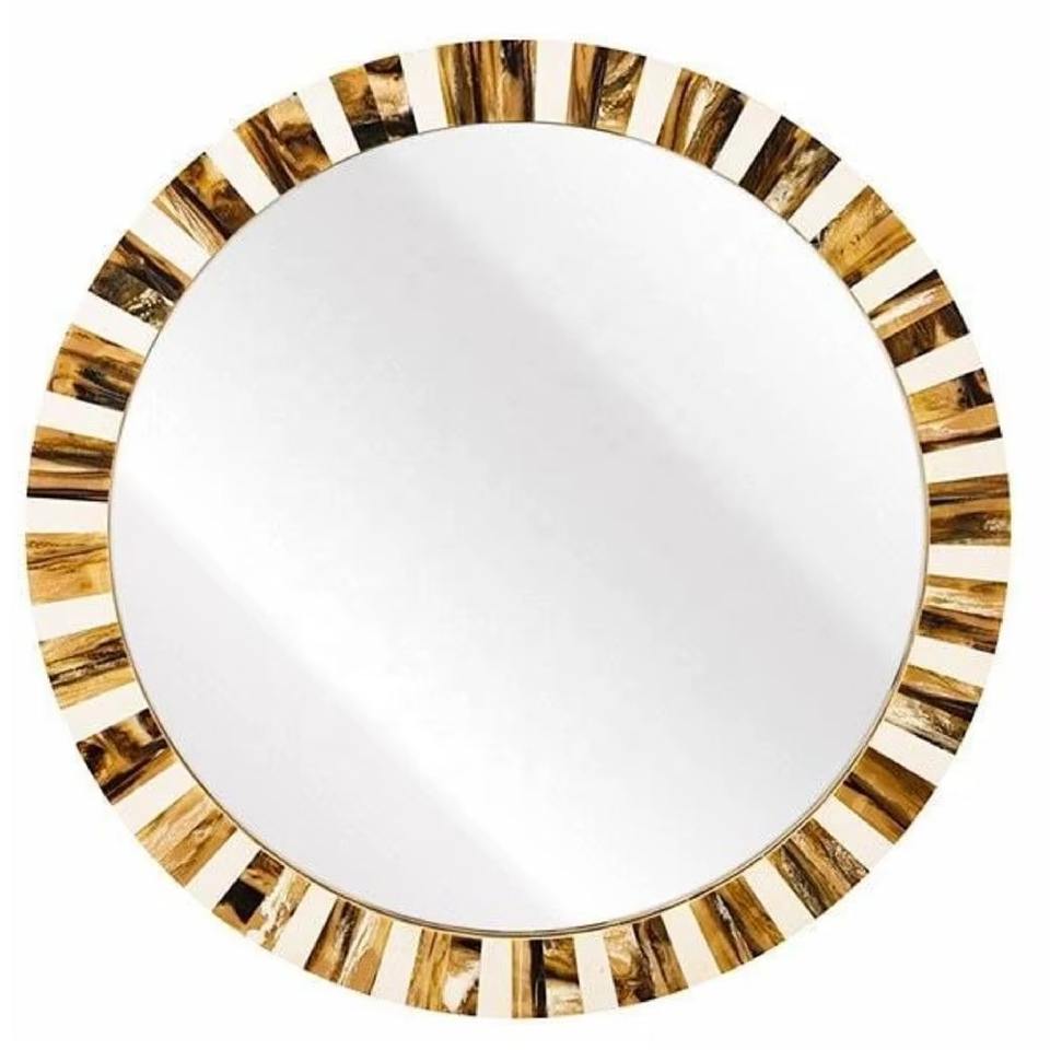 กระจกฝังกระดูกลายใบไม้สีน้ำตาลกลมหรูหราเน้นผนังที่สวยงามสำหรับห้องนอนห้องนั่งเล่นห้องน้ำหรือทางเข้าจากอินเดีย
