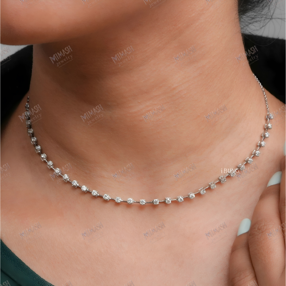 สร้อยคอโชคเกอร์ประดับเพชรทรงกลมหรูหราสำหรับผู้หญิงเครื่องประดับสไตล์เทนนิสเหนือกาลเวลาทำจากทองคำขาวเหมาะสำหรับงานแต่งงานและงานปาร์ตี้
