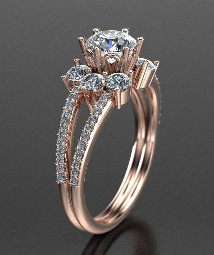 แหวนหมั้นเพชรทรงกลมเจียระไนอย่างประณีต เพชรเลี้ยงในห้องปฏิบัติการ เงินแท้ 925 ชุบทองสองสี ประดับเพชรแบบอเมริกัน