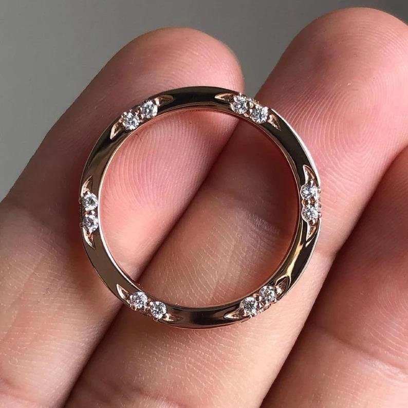 แหวนเพชรทรงกลมสีโรสโกลด์ 14K ประดับเพชรเลี้ยงในห้องปฏิบัติการ ดีไซน์เรียบหรู เหมาะเป็นของขวัญวันครบรอบแต่งงาน เครื่องประดับชั้นดีสำหรับผู้หญิง