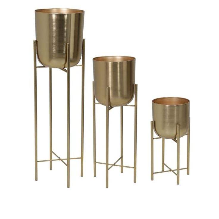 กระถางต้นไม้โลหะทรงกลมหรูหราพร้อมแผ่นทองสำหรับตกแต่งบ้านและงานแต่งงานในสวน