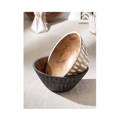 Elegant Round Salad & Soup Serving Bowl With Out side Hammered Design Soup & Gravy Serving Wooden Bowls Food Safe