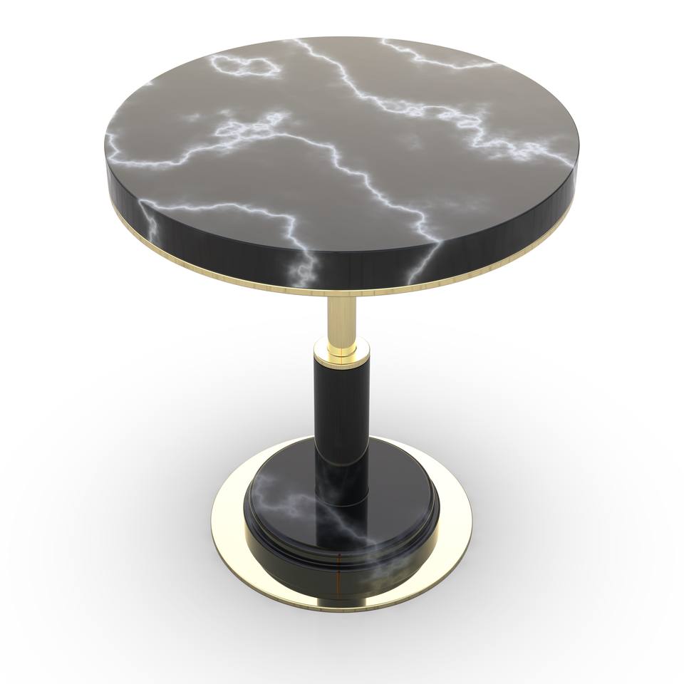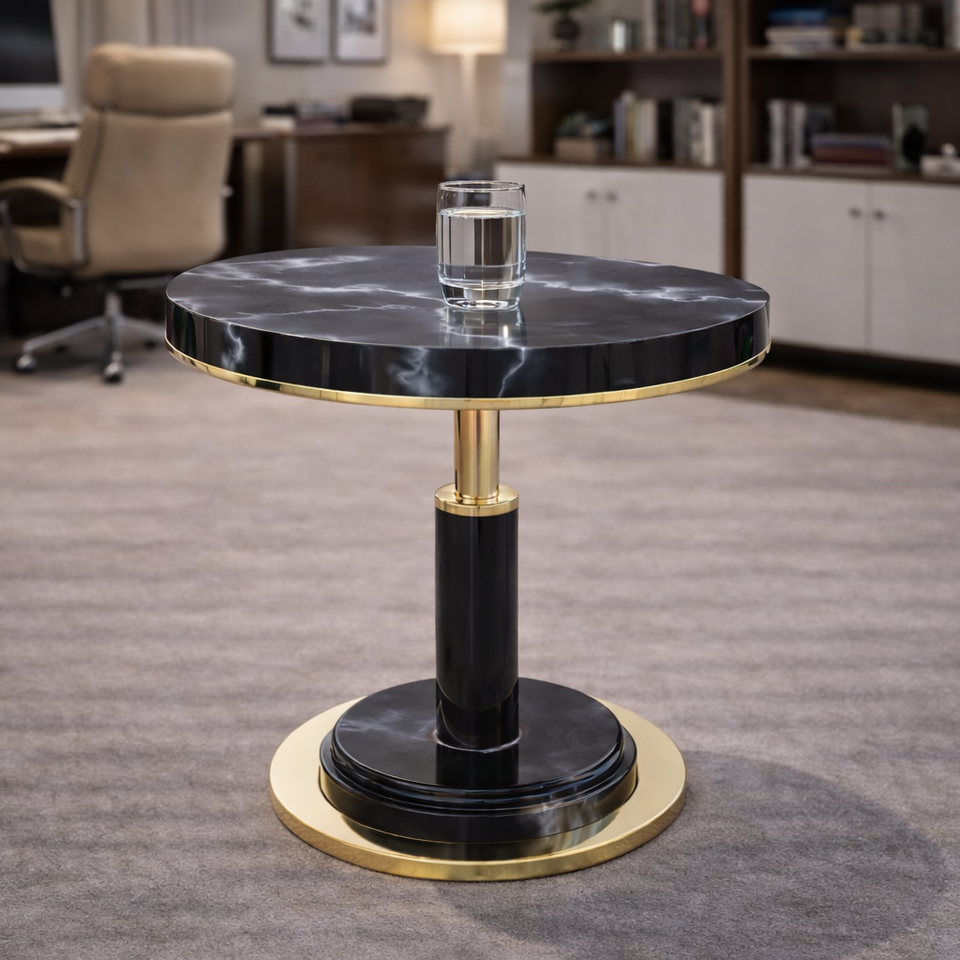 โต๊ะข้างดีไซน์หรู ทนทาน หน้าโต๊ะโลหะสีดำ ฐานโลหะสีทอง โต๊ะตกแต่งสไตล์โมเดิร์น เหมาะสำหรับห้องนั่งเล่น โรงแรม ตกแต่งบ้าน รุ่นเมทัลดรีค