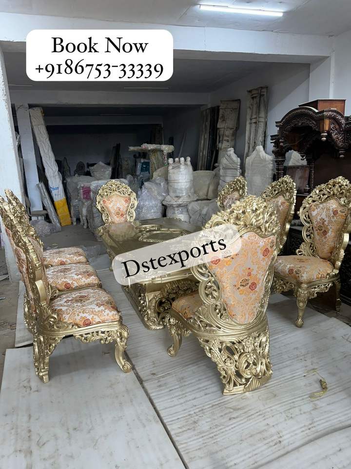 Product name:Elegant Royal Gold Dining Room Set With Curio Cabinet
