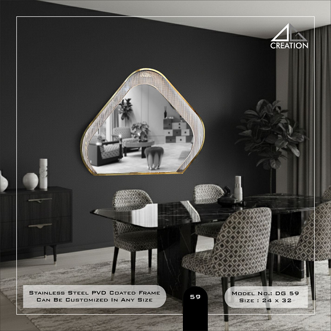 กระจกกรอบ PVD ดีไซน์หรูหรา พร้อมการเคลือบผ้าคุณภาพพรีเมียมเพื่อสัมผัสที่โดดเด่นและหรูหรา