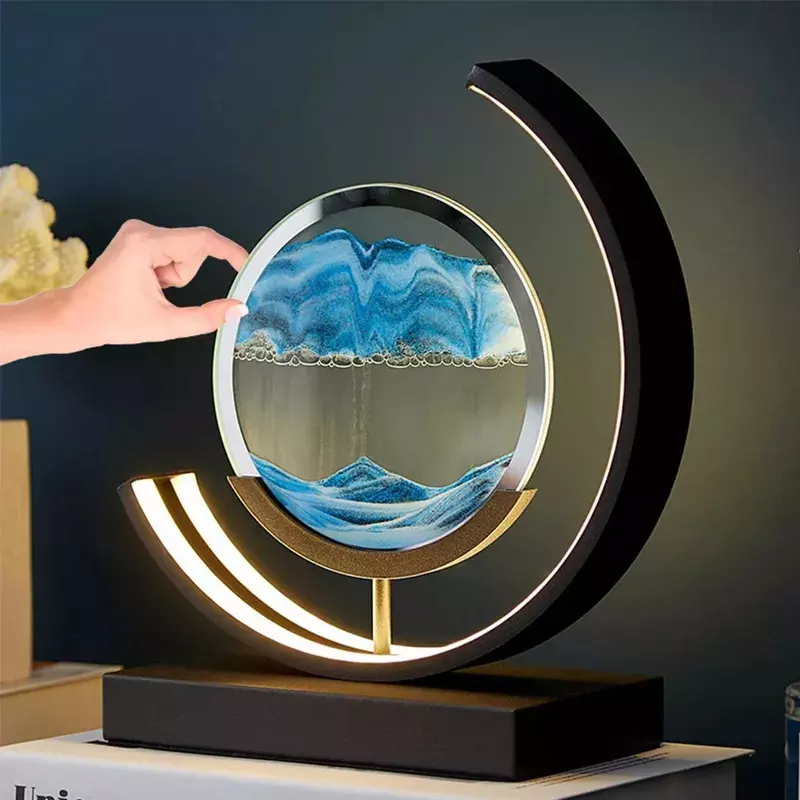แซนด์ที่สง่างามของโคมไฟเวลาที่มีการออกแบบสร้างสรรค์เดิมความสว่างหรี่แสงได้3สีควบคุมระยะไกลโคมไฟทรายอย่างรวดเร็ว