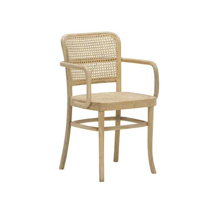 เก้าอี้รับประทานอาหารสไตล์สแกนดิเนเวียสุดหรูที่มีโครงไม้สักธรรมชาติและหวายธรรมชาติถักทอเพื่อประสบการณ์การรับประทานอาหารที่ทันสมัย