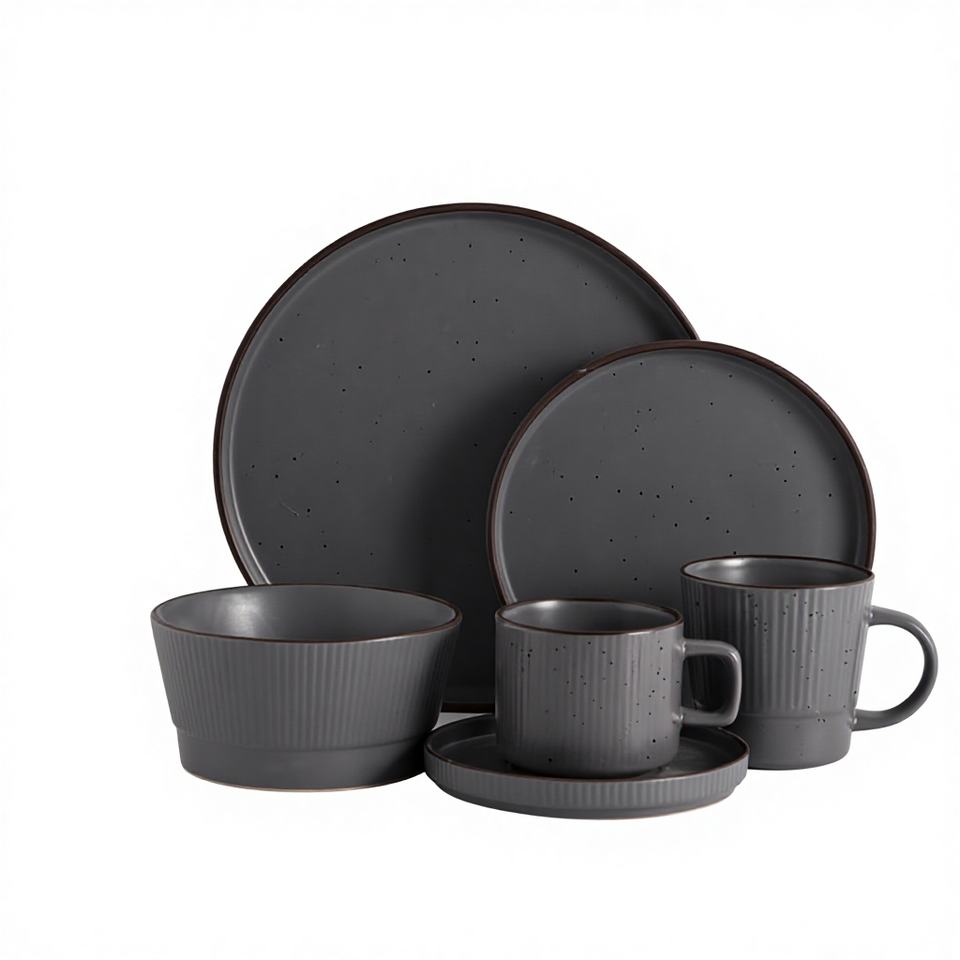 Elegant Scandinavian Matte Color Glazed Stoneware 4-Piece Dinnerware Set Ribbed Texture Durable Heat Resistant for Everyday Use
