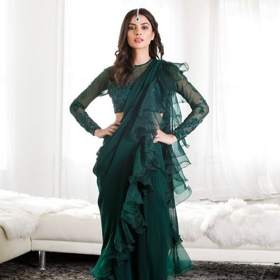 ส่าหรีที่สง่างามตามฤดูกาลที่มีการแต่งระบายอย่างมีสไตล์และมีรายละเอียดที่สมบูรณ์แบบสำหรับฟังก์ชั่นตอนกลางวันปาร์ตี้ตอนเย็นและงานรื่นเริง