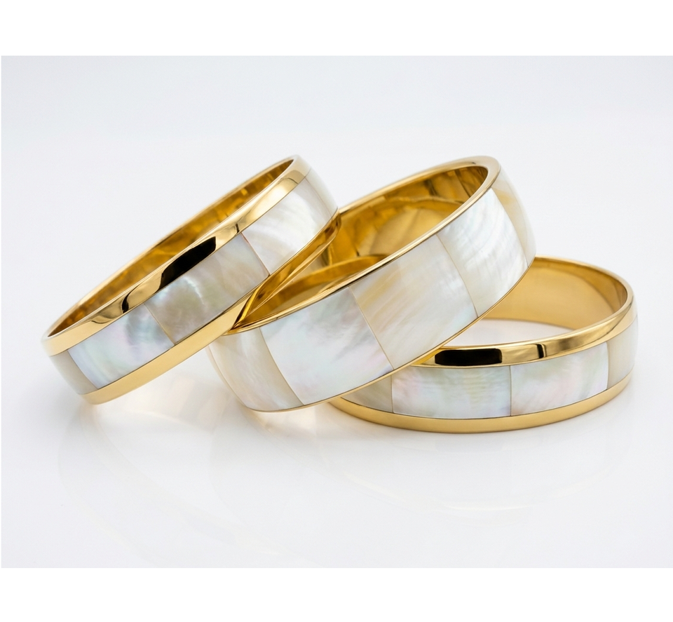 ชุดกำไลข้อมือเปลือกหอยมุก 3 ชิ้น ดีไซน์หรูหรา ประดับมุกเปลือกหอยและทองเหลือง แบบโมเสก สามารถสวมซ้อนกันได้ เหมาะสำหรับขายส่งเครื่องประดับ