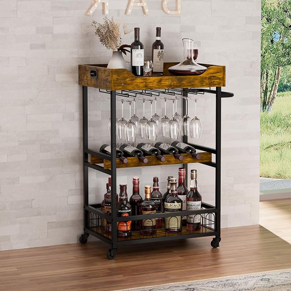 ชุดถาดเสิร์ฟสีดำสามรอบหรูหราพร้อมขอบทองและด้ามจับที่ทันสมัยสำหรับการเสิร์ฟและการแสดงสินค้า