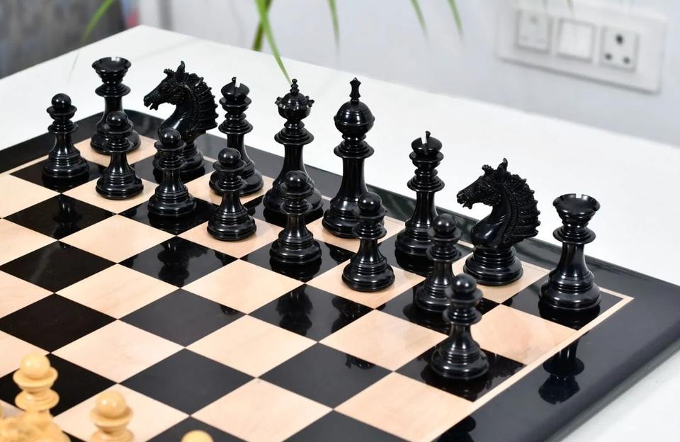 ชุดหมากรุกไม้สามชั้นน้ำหนักถ่วงพิเศษ รุ่นเอ็มไพร์ซิก ดีไซน์หรูหรา ขนาด 4.5 นิ้ว ทำจากไม้มะเกลือแท้และไม้บ็อกซ์วูด พร้อมกล่อง ราคาสุดคุ้ม