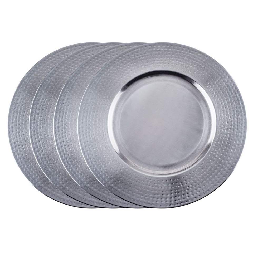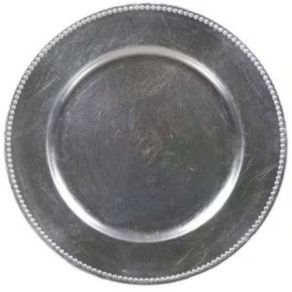 Elegant Silver Beaded Rim Charger Plate Metal Decorative Round Serving Tray for Wedding Party Events Christmas Tableware Decor