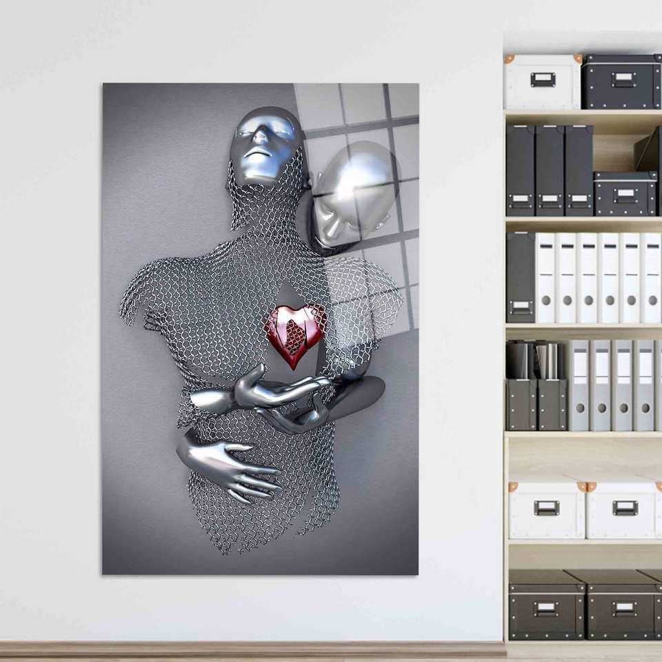 ภาพพิมพ์บนผ้าใบคู่รักสีเงินสุดหรู: ภาพพิมพ์ความรักสมัยใหม่สำหรับตกแต่งบ้าน, ศิลปะบนกระจกนิรภัย