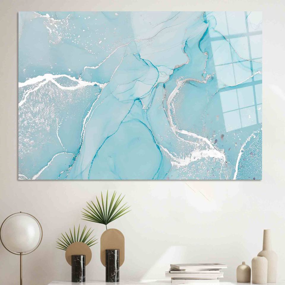 ศิลปะบนผืนผ้าใบพิมพ์ลายหินอ่อนสีเงินสุดหรูสำหรับตกแต่งบ้าน, ศิลปะบนกระจกนิรภัย