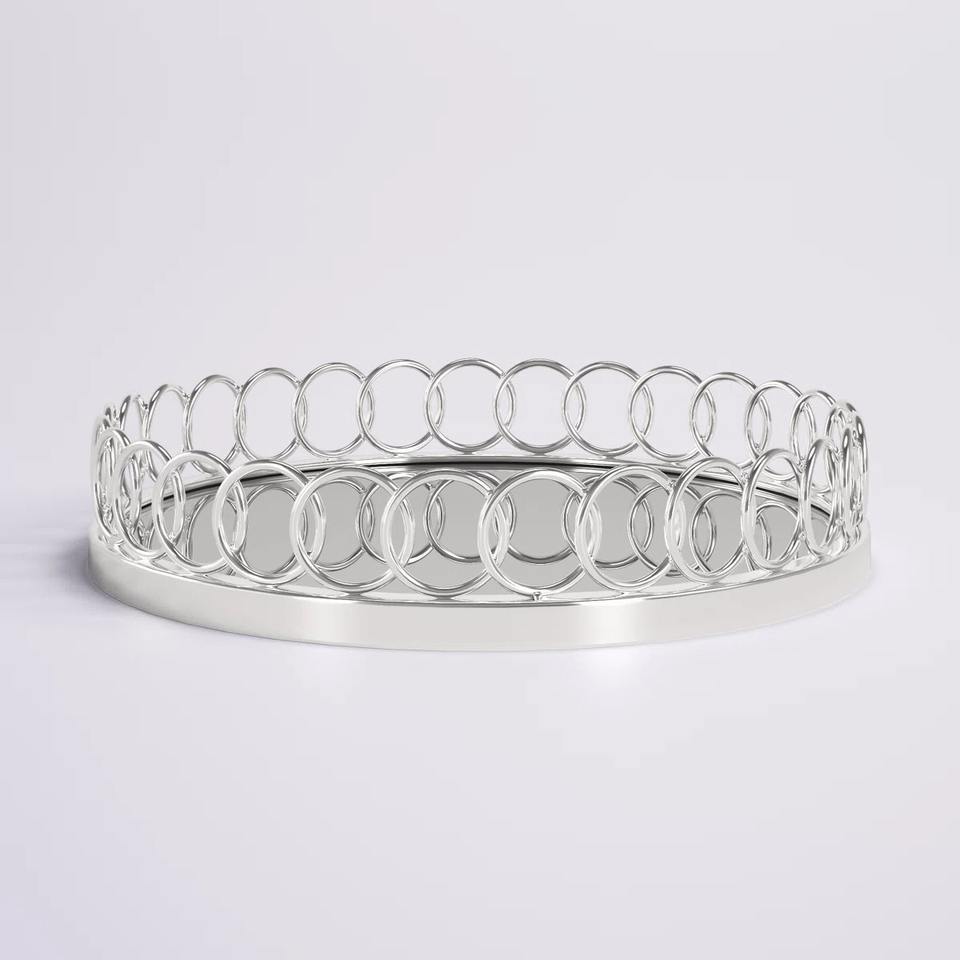 Elegant Silver Mirror Display Tray with Ornate Polished Chrome Ring Border for Luxury Home Decor
