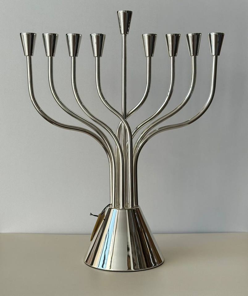 เชิงเทียนเงินเก้ากิ่งลายฉลุรูปดาวกลาง ดีไซน์หรูหรา สำหรับตกแต่งในวันฮานุกกะของชาวยิว