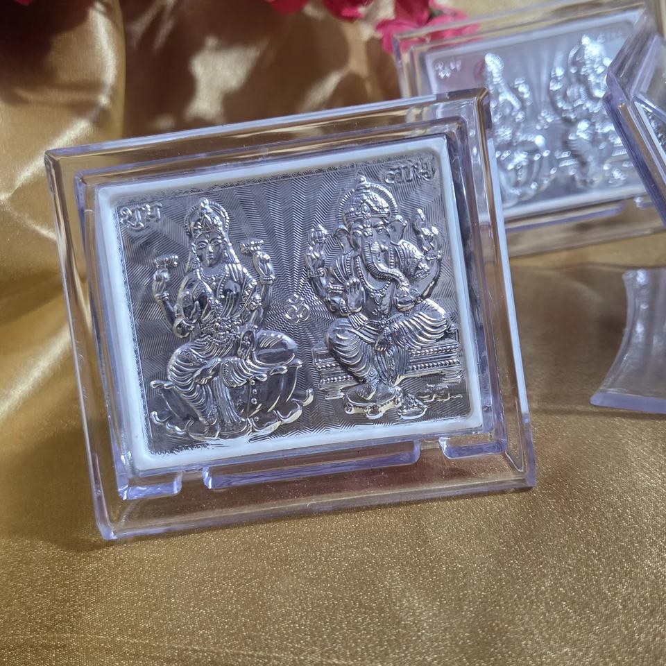 กรอบรูปพระลักษมีพระพิฆเนศชุบเงินอย่างสวยงาม สำหรับบูชาที่บ้าน สำนักงาน โต๊ะทำงาน และเป็นของขวัญในเทศกาล พร้อมฐานอะคริลิคคุณภาพพรีเมียม