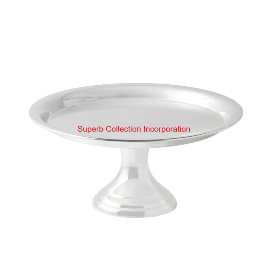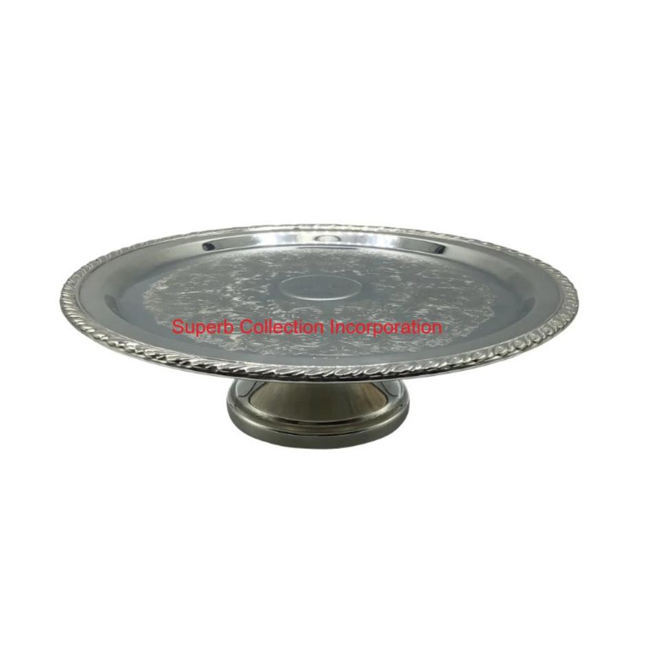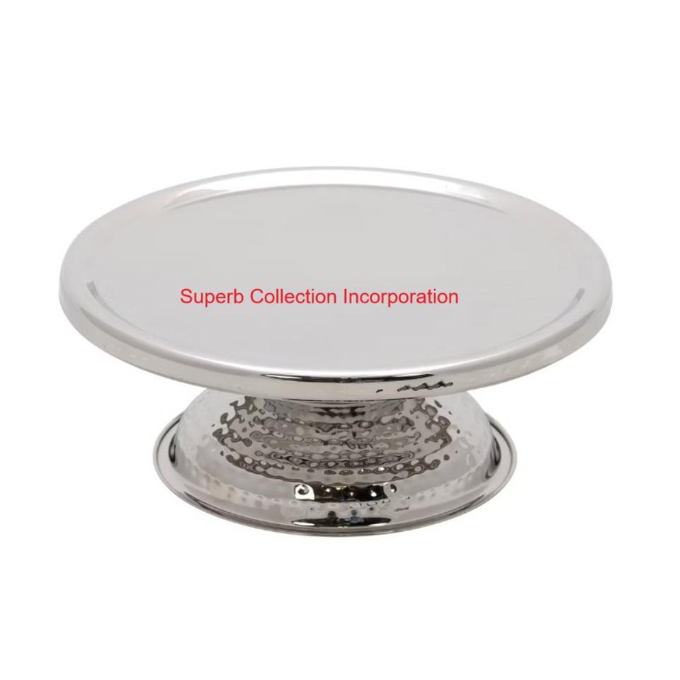 แท่นวางเค้กชุบเงินหรูหราสำหรับงานเลี้ยงวันเกิดการแสดงขนมหวานโลหะทรงกลมคอลเลกชันที่ยอดเยี่ยม