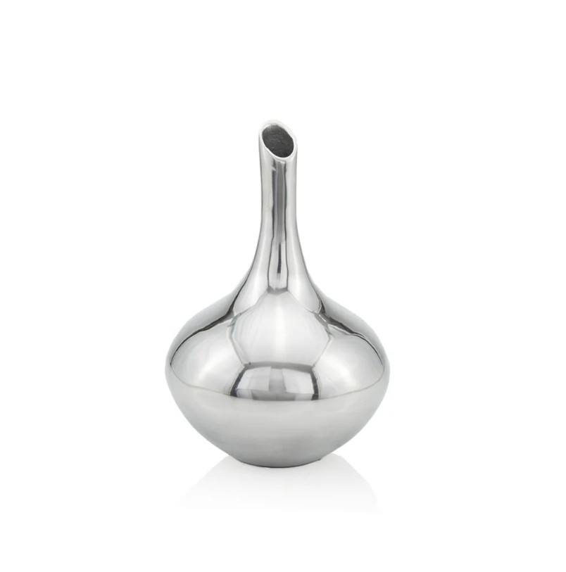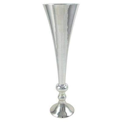 แจกันทรงทรัมเป็ตชุบเงินอย่างดี สำหรับตกแต่งงานแต่งงานและตกแต่งบ้าน แจกันดอกไม้ลายร่อง ทำจากอะลูมิเนียมคุณภาพสูง