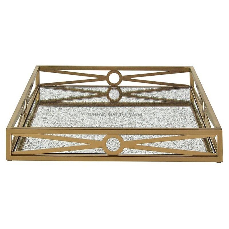 ถาดเสิร์ฟทรงสี่เหลี่ยมสีเงินสุดหรูพร้อมพื้นผิวที่เรียบและด้ามจับแข็งแรงเหมาะสำหรับการตกแต่งบ้านที่สนุกสนานและมีสไตล์
