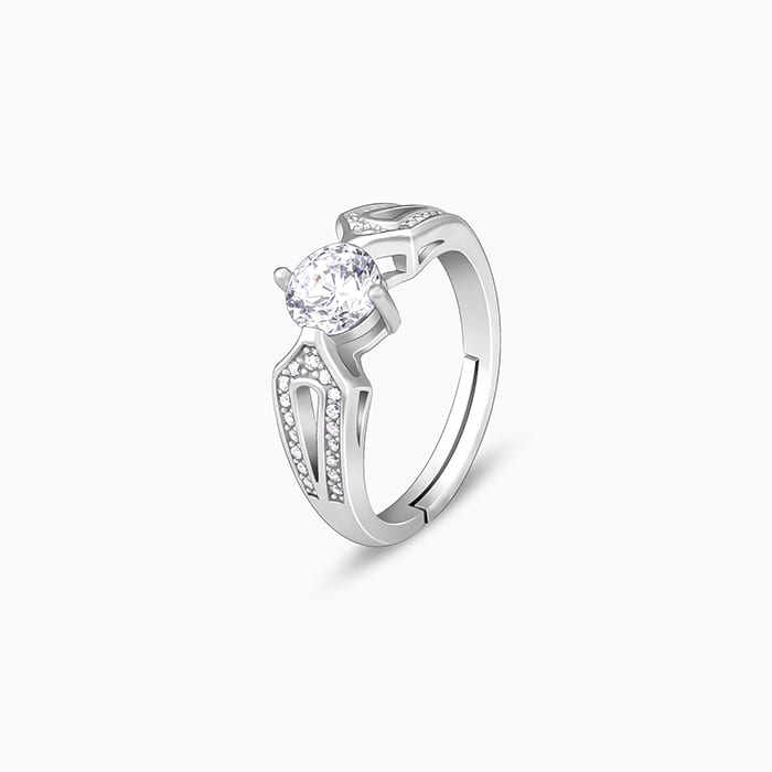 แหวนห่วงเพทายสีเงินสุดหรูเครื่องประดับทองขาวละเอียดรูปทรงเรขาคณิตพร้อมเครื่องเพชรพลอยชุบโรเดียมและเวอร์เมิล