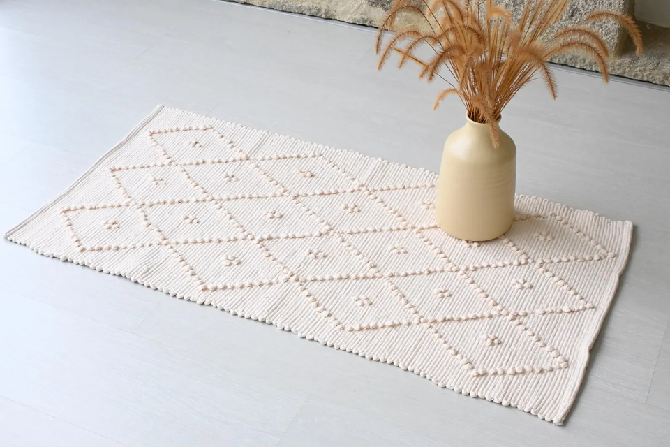 พรมขนาดเล็กหรูหราสำหรับห้องนอนพรมที่สามารถซักได้พรมคอตตอนทอมือในร่มพรมสีขาว
