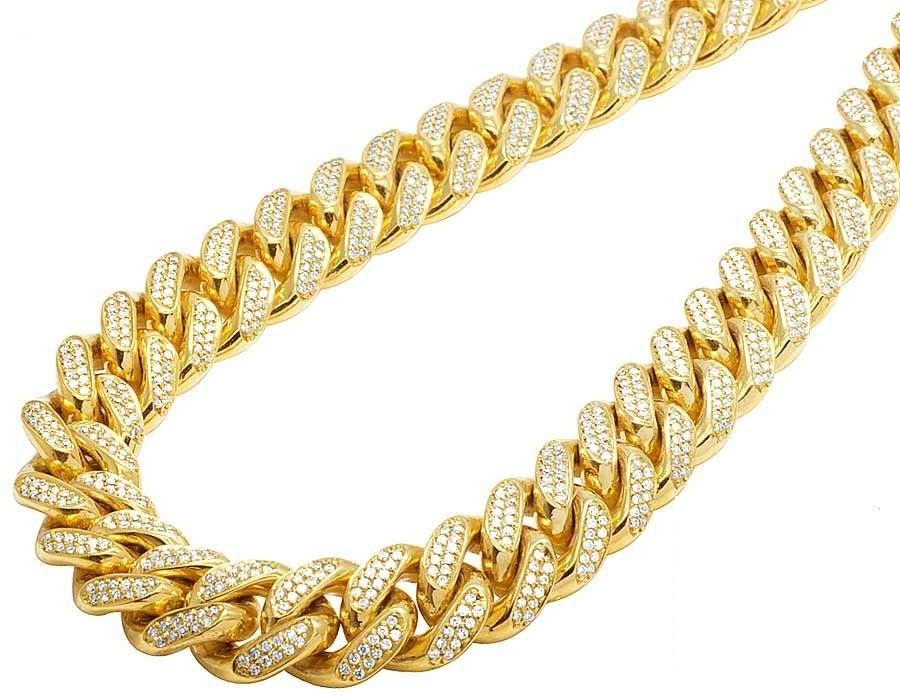 สร้อยคอเพชรคิวบาสีเหลืองทอง10K พร้อมแล็บสำหรับปลูกมีเพชรมีสไตล์สำหรับผู้ชายสวมใส่ในงานปาร์ตี้