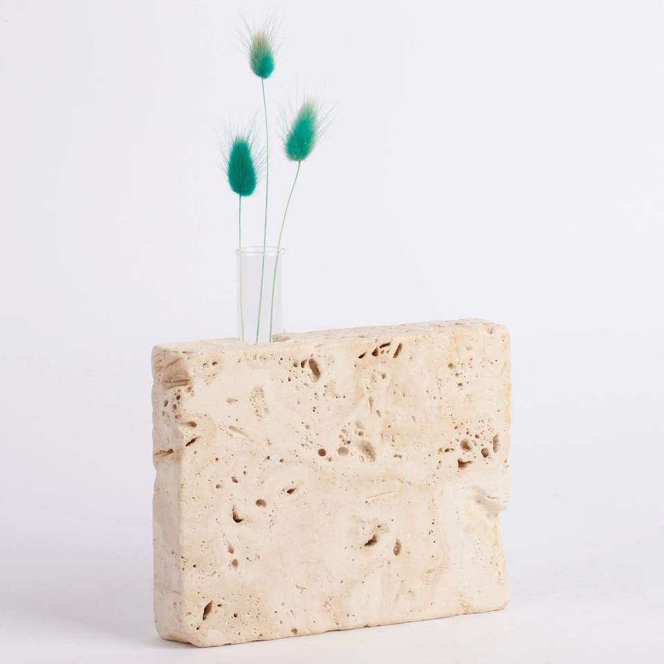 แจกันดอกไม้หินอ่อนทราเวอร์ทีนดีไซน์หรูหรา เหมาะสำหรับการตกแต่งภายในสไตล์โมเดิร์นและการจัดดอกไม้