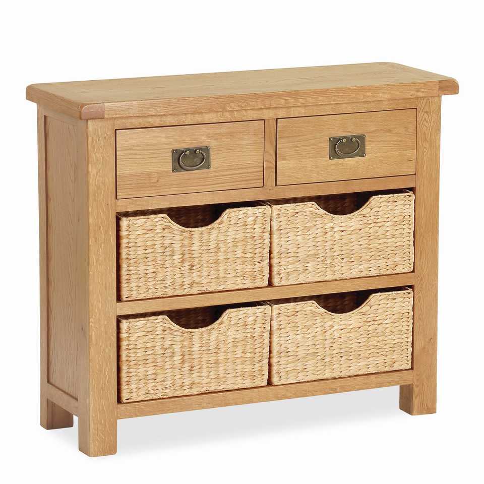 Elegant Solid Wood Console Table With Woven Water Hyacinth Baskets Adding Storage And Display Space To Your Living Room