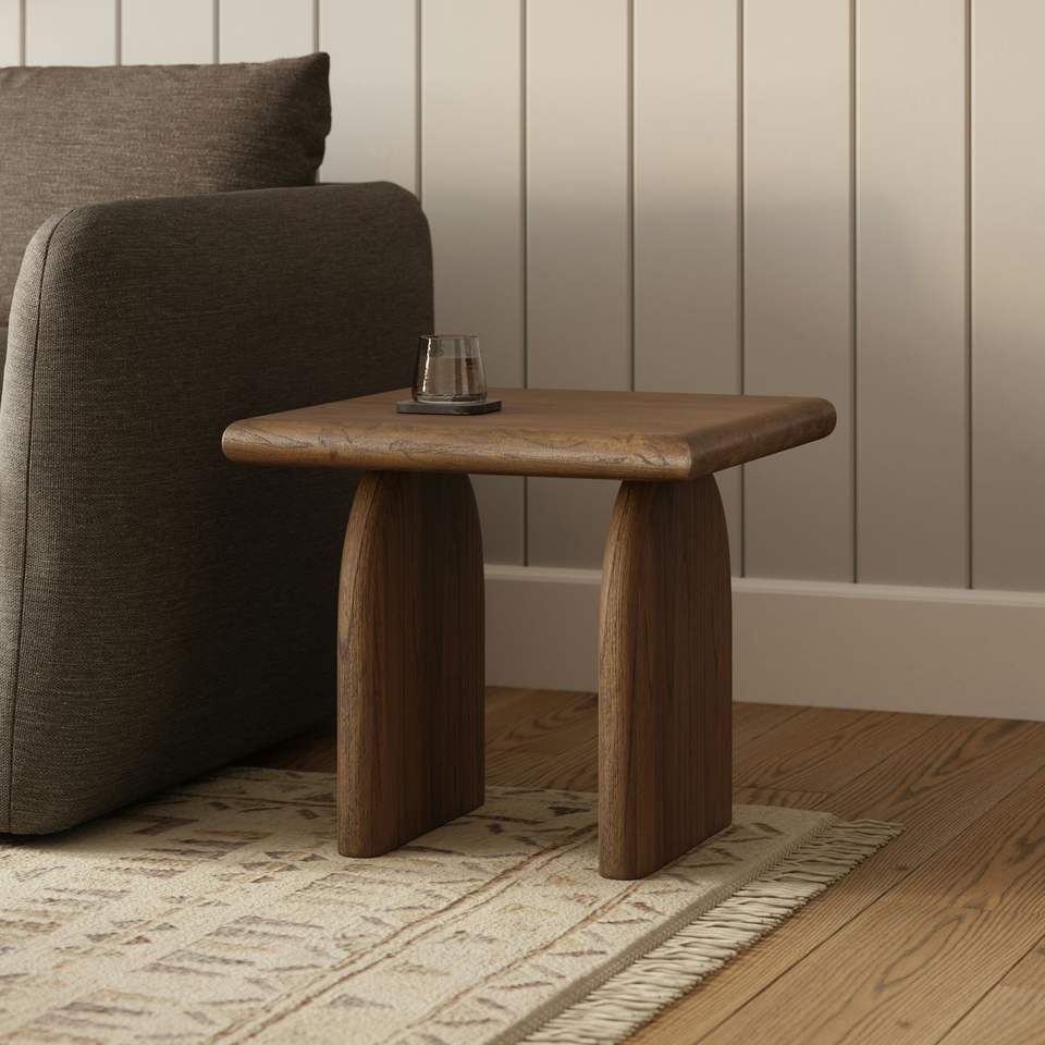 โต๊ะข้างไม้เนื้อแข็ง ดีไซน์หรูหรา ฐานแข็งแรง หน้าโต๊ะเรียบเนียน พร้อมลายไม้ธรรมชาติ เพื่อการตกแต่งบ้านที่เหนือกาลเวลา