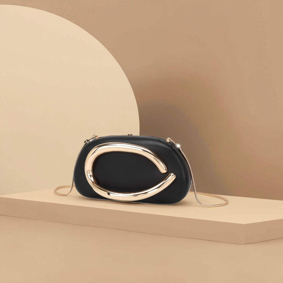 กระเป๋าถือหนัง PU ทรงสี่เหลี่ยมหรูหราพร้อมโซ่ถอดออกได้และตกแต่งโลหะกระเป๋าคลัทช์สำหรับงานราตรีมีสไตล์