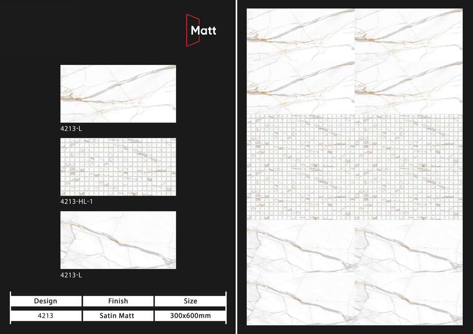 กระเบื้องพอร์ซเลนเคลือบด้านลายหรูหรา ขนาด 300x600 มม. ออกแบบมาเพื่อเสริมสร้างสถาปัตยกรรมสมัยใหม่ด้วยโครงสร้างที่แข็งแรงและให้ความรู้สึกสงบ