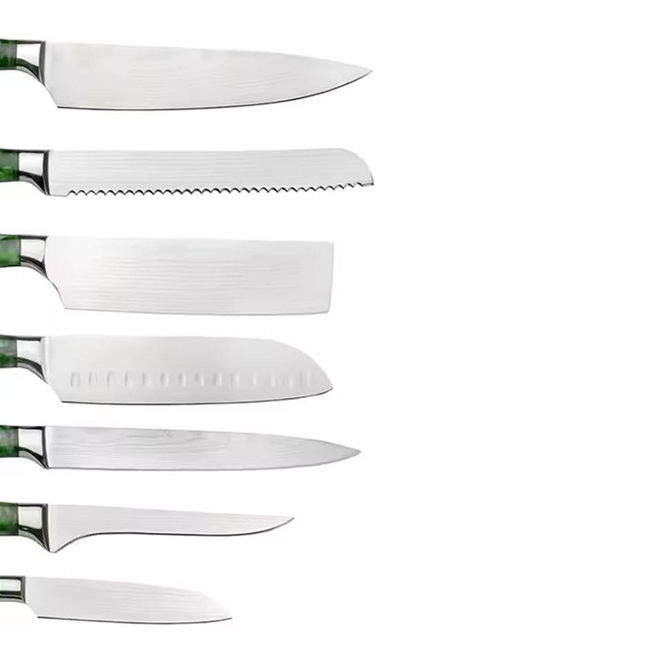 ชุดมีดเชฟสแตนเลสสุดหรูที่มีน้ำหนักสมดุลและที่จับกันลื่นเพื่อการทำอาหารที่ราบรื่นและมีประสิทธิภาพ