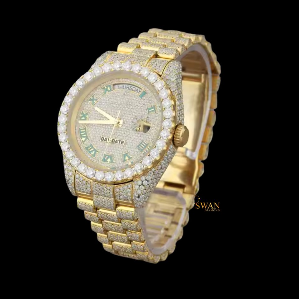 นาฬิกาเพชร Moissanite สแตนเลสหรูหราสำหรับผู้ชายผู้หญิงคุณภาพสูงสุดดีไซน์ฮิปฮอปทำจากแก้วอะนาล็อก