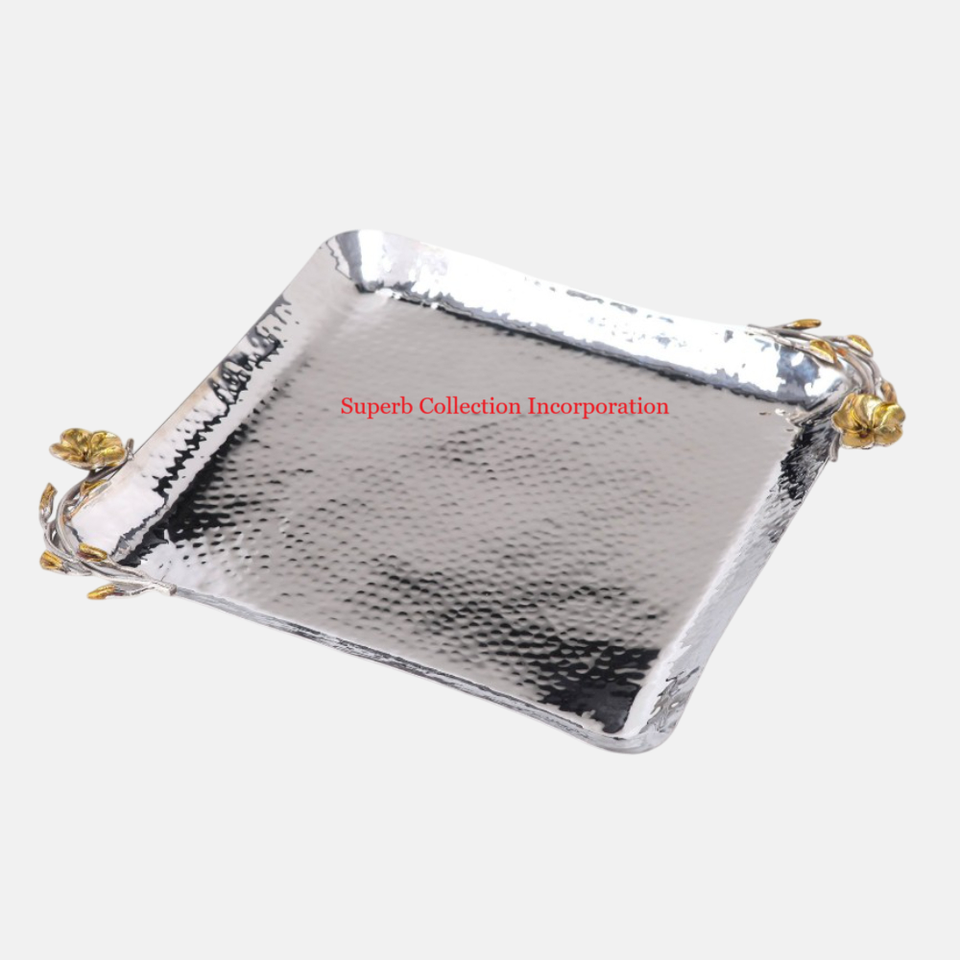 ถาดเสิร์ฟขนมสเตนเลสสตีลสุดหรูถาดเสิร์ฟขนมดีไซน์แบบทุบที่ไม่เหมือนใครเหมาะสำหรับตกแต่งบ้านหรืองานบริการต่างๆ