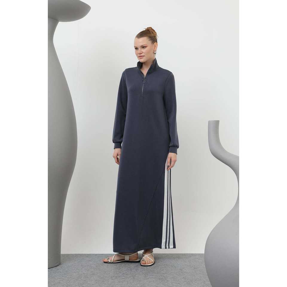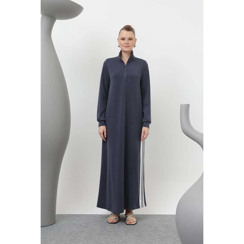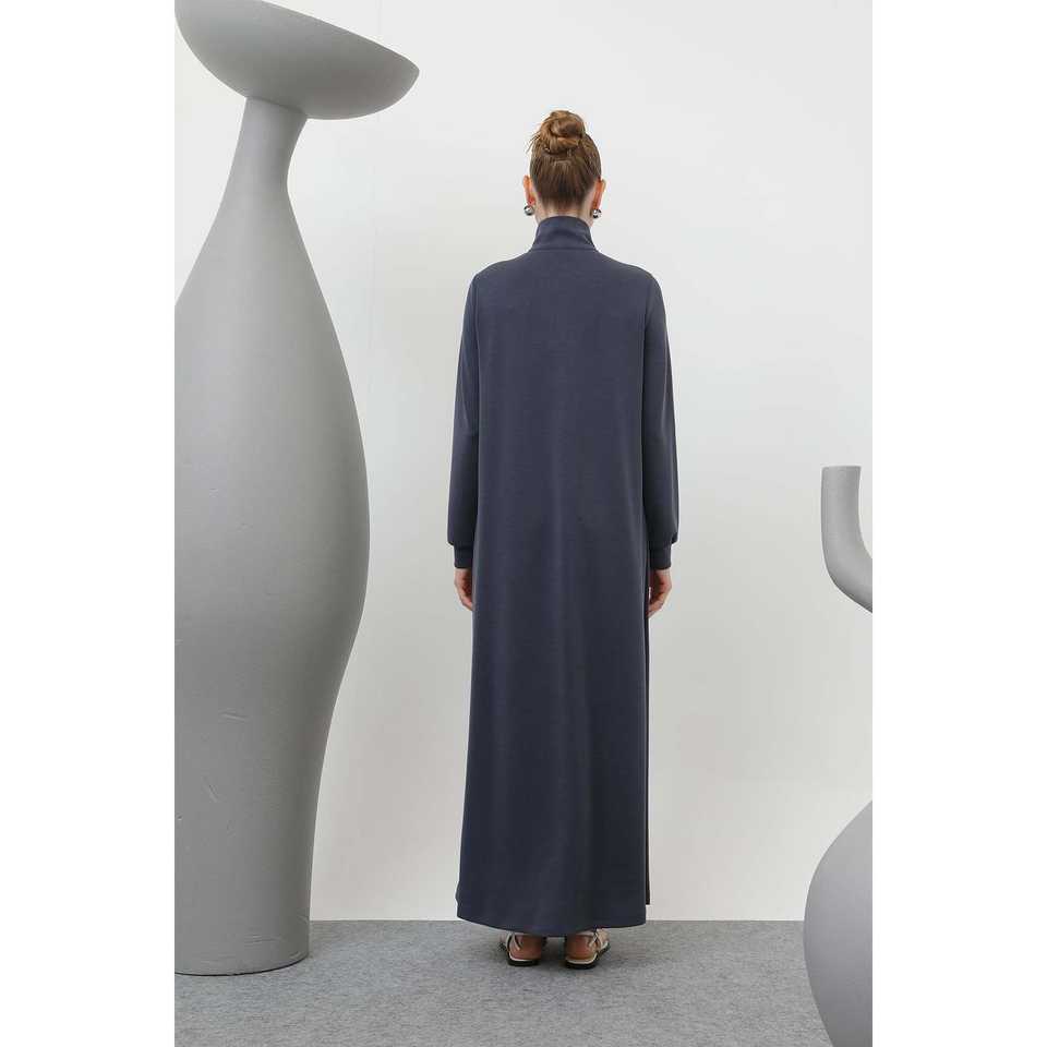 เดรสยาวคอตั้งทรงหรูหราผ่าข้างทรงหลวมผ้าทอสีดำลำลองใส่ได้ทุกวันแฟชั่นสำหรับผู้หญิง