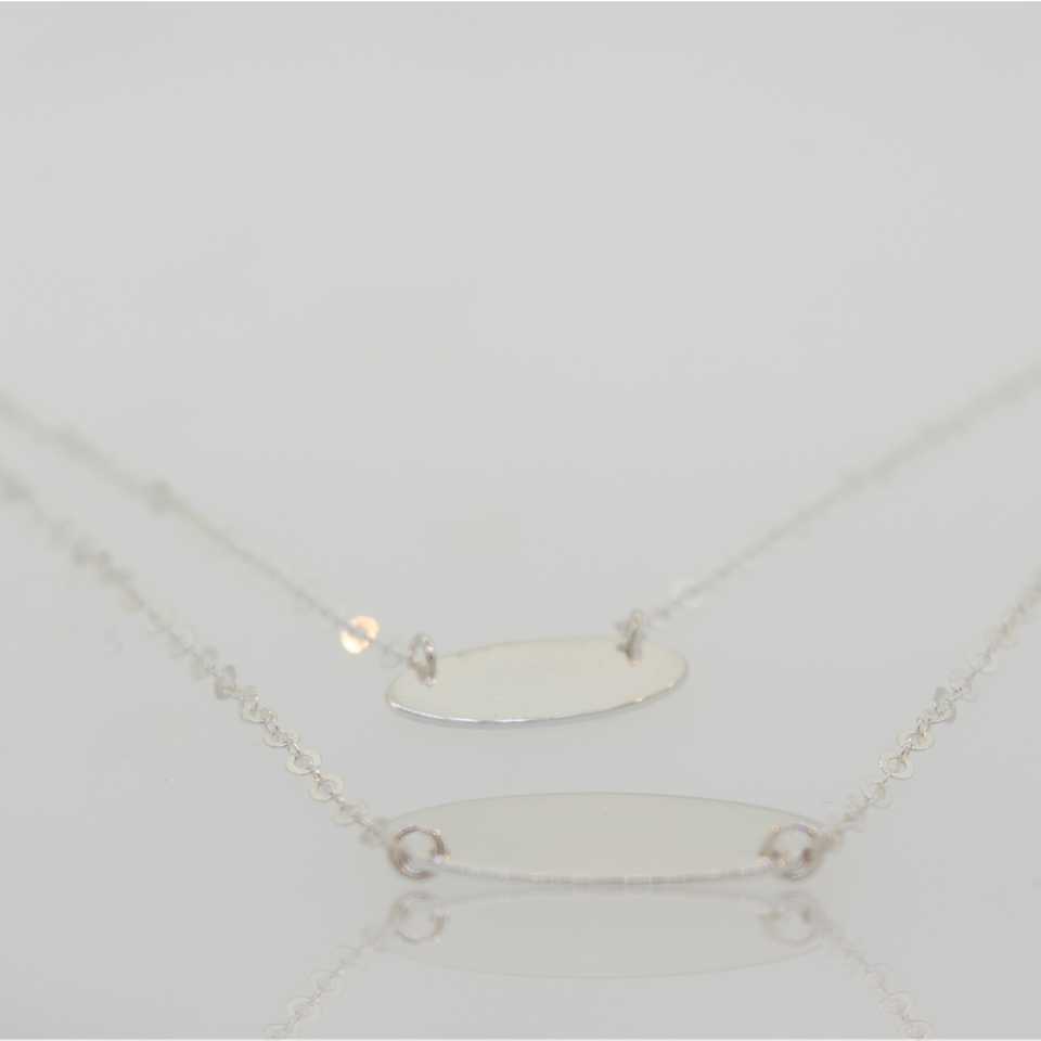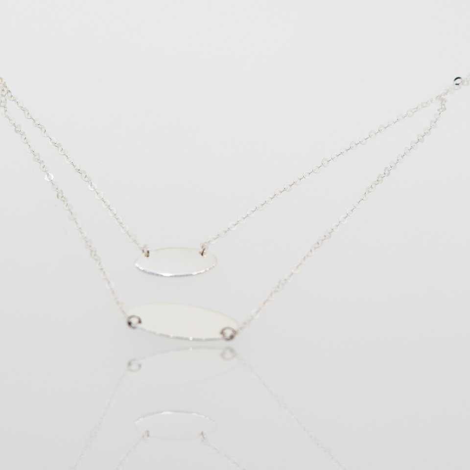 สร้อยคอเงินสเตอร์ลิงหรูหราพร้อมจี้รูปวงรีสองแผ่น