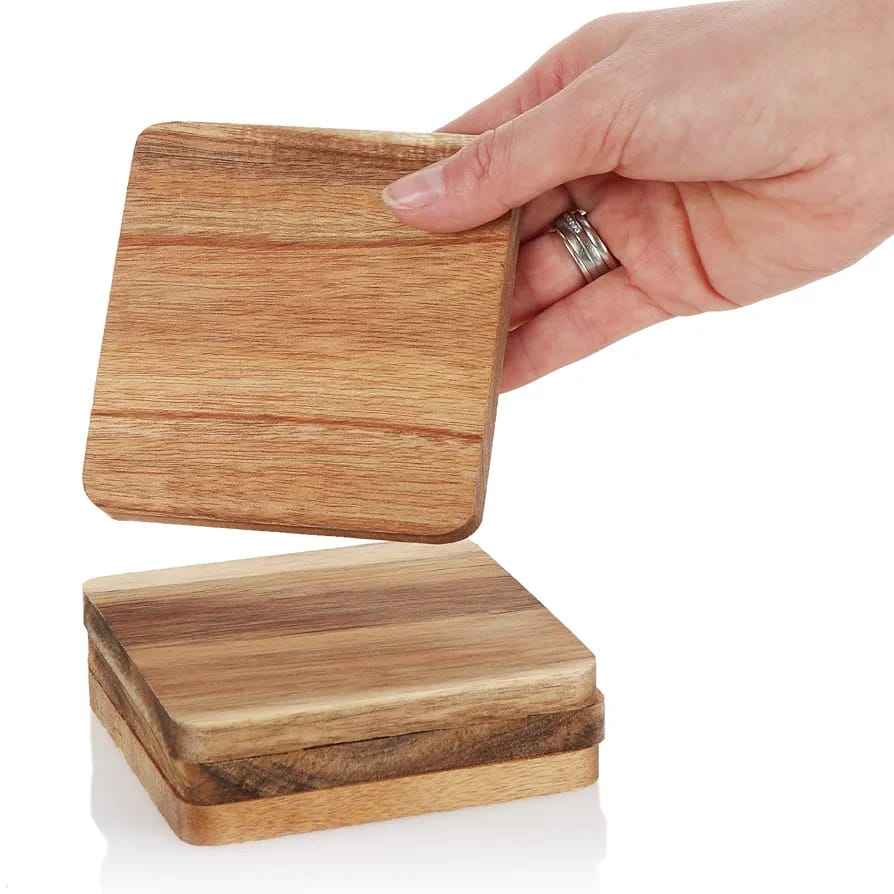 ที่รองแก้วไม้อคาเซียแผ่นไม้วอลนัทเป็นมิตรกับสิ่งแวดล้อมวัสดุดีไซน์คลาสสิกสำหรับแผ่นรองเครื่องดื่ม