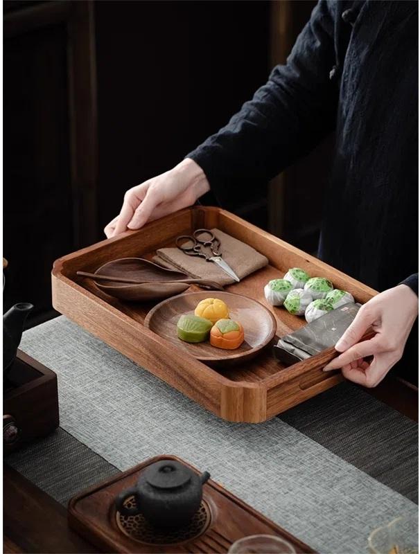 ถาดเก็บของและเสิร์ฟอาหารดีไซน์หรูหรา ขอบยกสูง พกพาสะดวก มีหูจับแบบเจาะรู ประหยัดพื้นที่ เหมาะสำหรับตกแต่งโต๊ะอาหาร