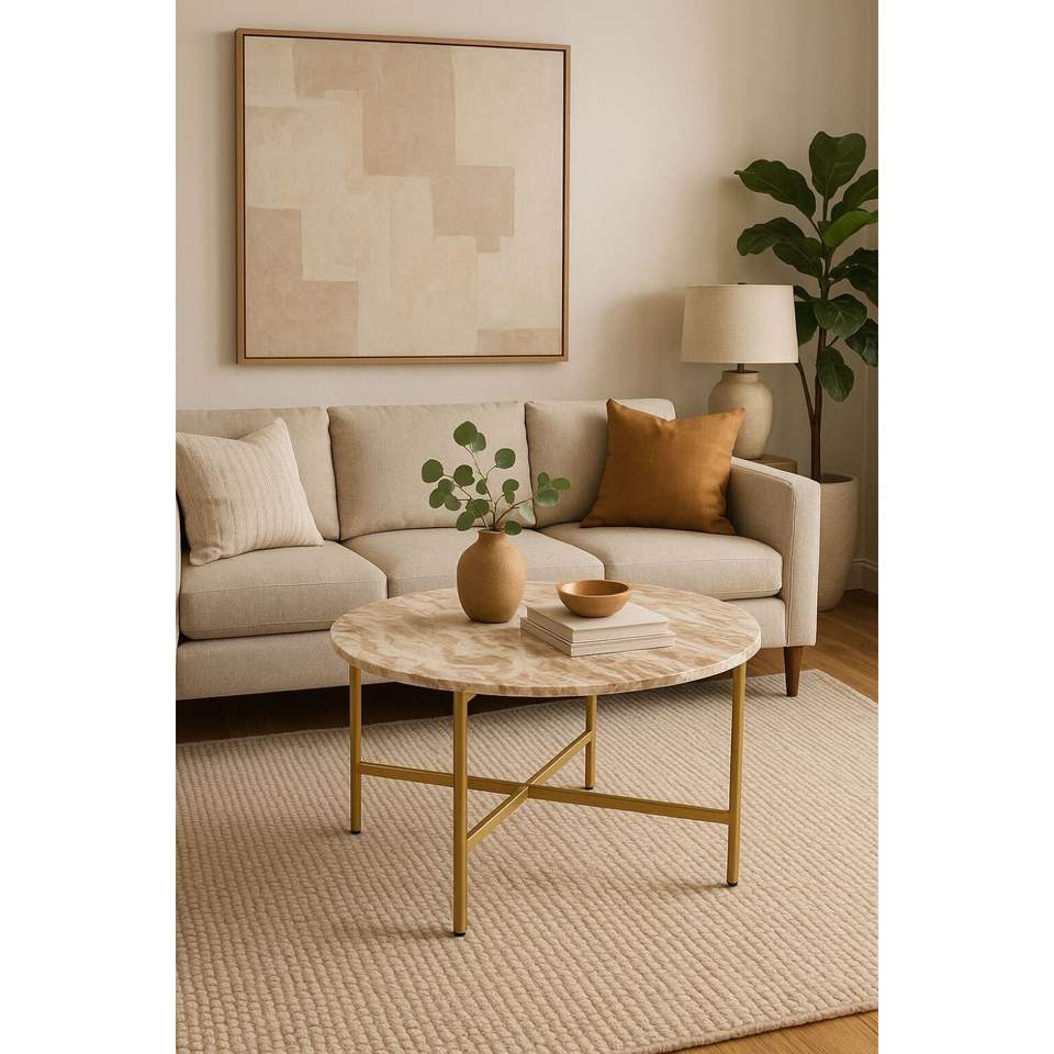 โต๊ะกาแฟหินอ่อนสีน้ำตาลที่แข็งแรงสง่างามกรอบโลหะสีทองดีไซน์ทันสมัยดีไซน์เรียบง่ายประหยัดพื้นที่สำหรับห้องนั่งเล่น