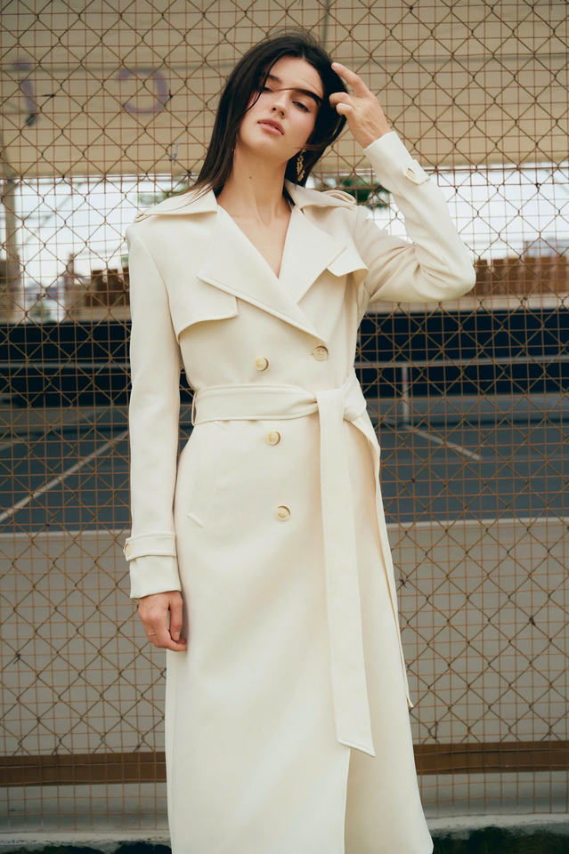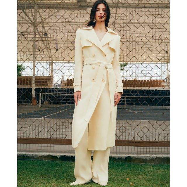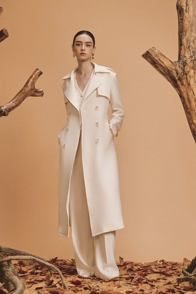 ชุดเทรนช์โค้ทสำหรับผู้หญิงคอลเลคชั่นฤดูใบไม้ร่วงเสื้อผ้ายาวใส่สบายสไตล์หรูหราผลิตจากเวียดนาม