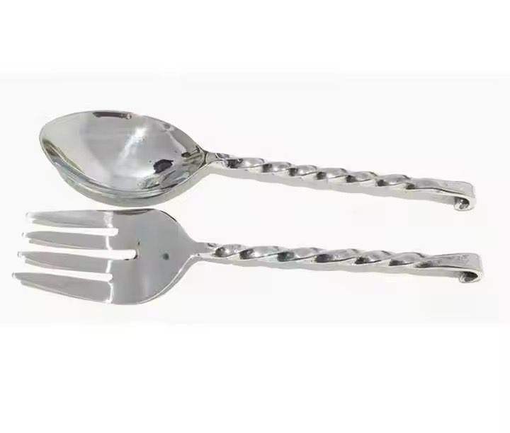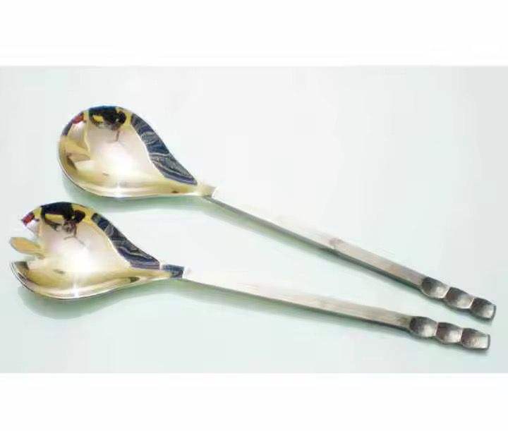 ชุดเสริฟสลัดสแตนเลสแบบออกแบบได้ตามต้องการชุดเสริฟสลัดด้ามทุบเครื่องมือผสมสลัดชุดช้อนส้อมแบบหมุน