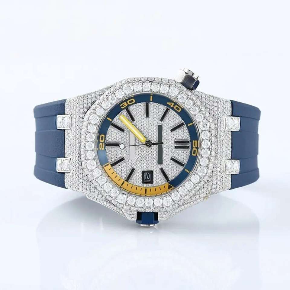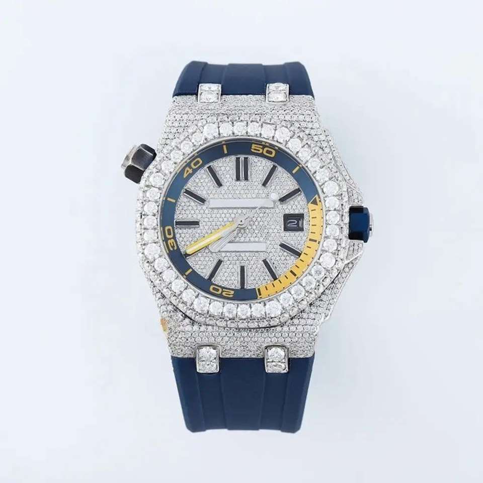 นาฬิกาสายรัดยางแนวฮิปฮอปประดับเพชรเม็ดเพชรเม็ดเพชรเม็ดเล็กพิเศษออกแบบได้ตามต้องการหรูหราสำหรับผู้ชายและผู้หญิง