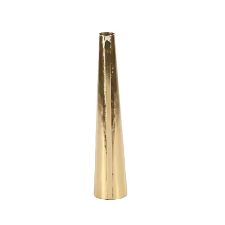 แจกันโลหะสีทองสไตล์หรูหราแจกันดอกไม้อลูมิเนียมแบบเรียบง่ายกระถางดอกไม้แจกันทรงเทเปอร์สำหรับงานแต่งงานโต๊ะกลางตกแต่ง