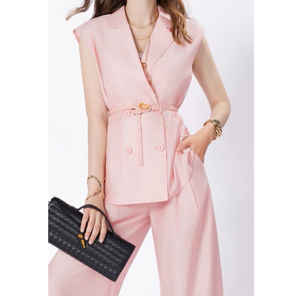 เสื้อเบลเซอร์ของผู้หญิงเสื้อเบลเซอร์ผ้าทอลายทแยงกันรอยยับของเวียดนามเสื้อเบลเซอร์โครเชท์กระดุมสองแถวสไตล์หรูหรา