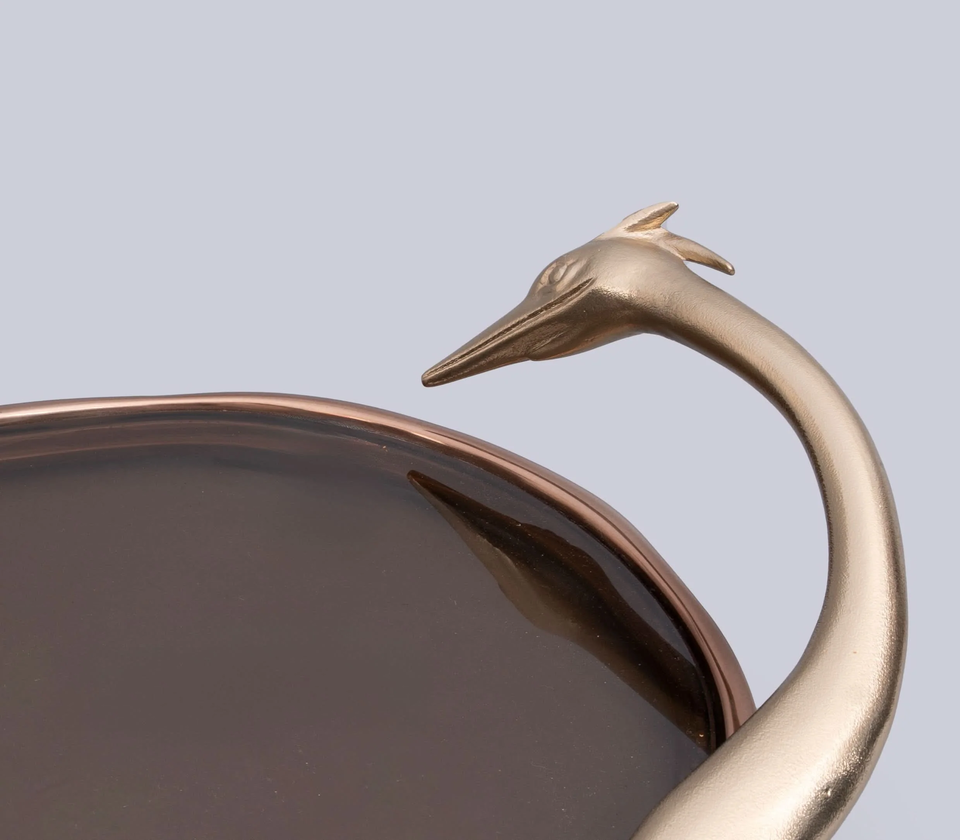 ถาดเสิร์ฟพร้อมหูจับรูปหงส์หรูหราพร้อมผิวสีบรอนซ์สำหรับตกแต่งบ้านและรับประทานอาหาร
