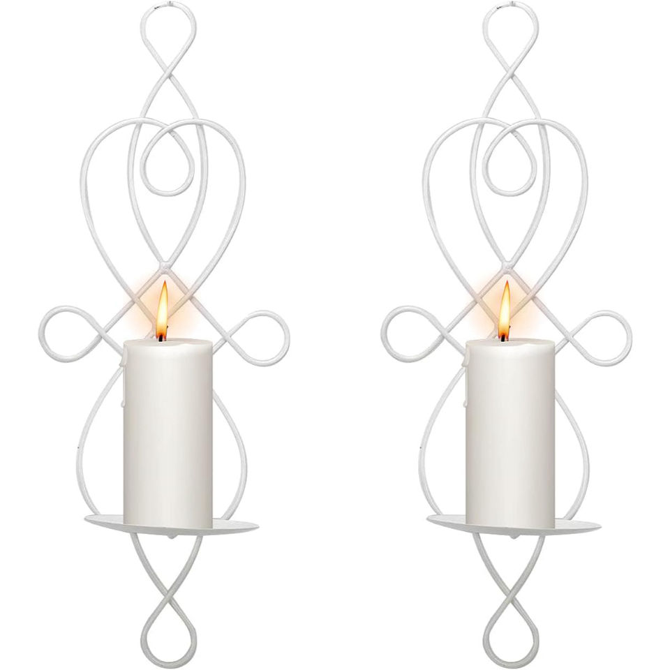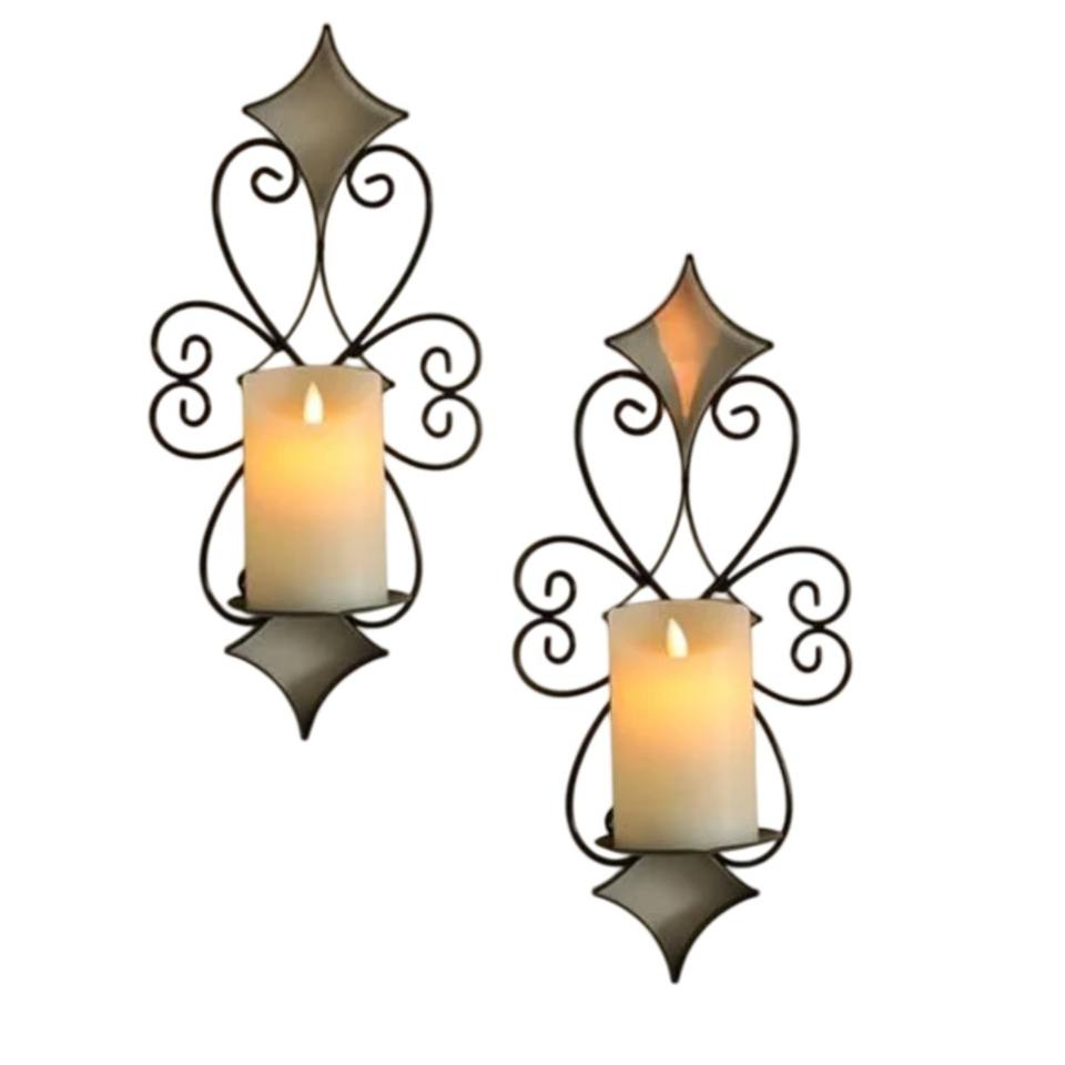เชิงเทียนติดผนังเหล็กดีไซน์หรูหรา ชุด 2 ชิ้น เชิงเทียนโลหะตกแต่งสำหรับตกแต่งบ้าน
