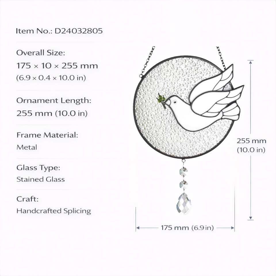 นกพิราบสัญลักษณ์แห่งสันติภาพสุดงดงาม ตกแต่งกรอบโลหะด้วยกระจกสี งานฝีมือประดับหน้าต่าง ดักจับแสงสวยงาม