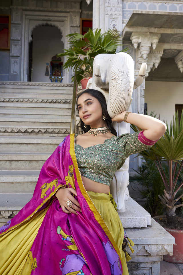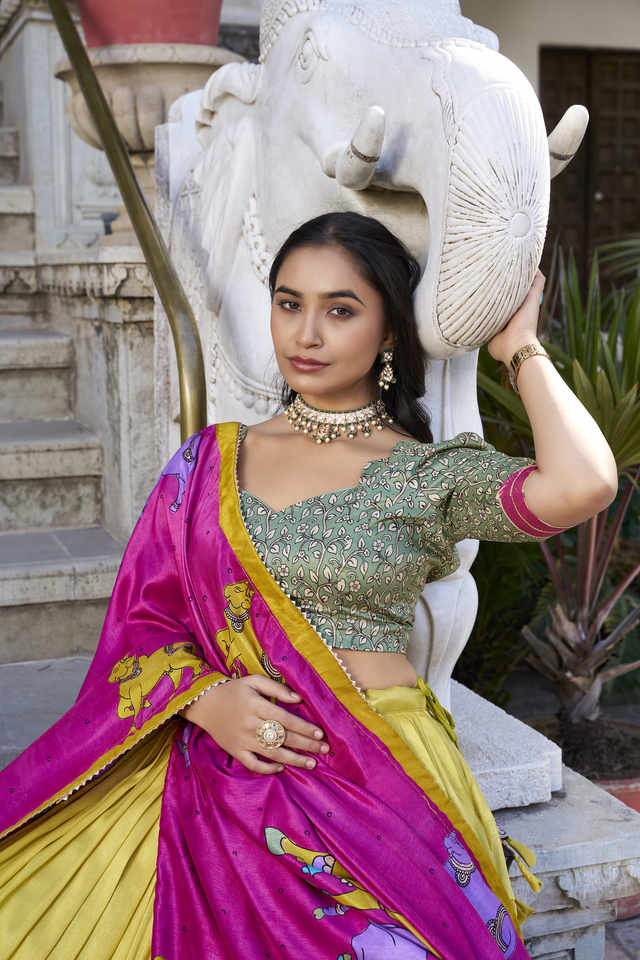Lehenga Work:Kalamkari With Foil Work